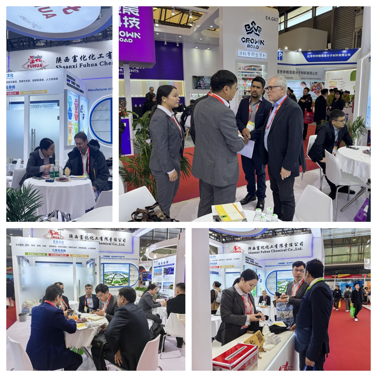 Shaanxi Fuhua Chemical Co., Ltd, as a leading enterprise that has obtained great attention in the industry, is represented at this event by the company’s chairman, with members from domestic and foreign trade sales department and technical research and development departments forming a collective team to participate. Utilizing this platform, Fuhua showcases its range of products including refined BaSO4, superfine BaSO4, modified BaSO4 as foundational precipitated barium sulfate; introduces specialized application types of barium sulfate such as those used for brake pads, batteries, plastics and inks; and promotes nano precipitated barium sulfate and nano barium sulfate functional masterbatch, along with a series of sodium sulphide products. During the exhibition, we prominently presented our new product—silicon-aluminum modified barium sulfate—through unique inorganic coating process, it has the characteristic of better dispersion, gloss and weather resistance compared to conventional products. This product can be used in high-end automotive topcoats, electronic inks, outdoor coatings, and high-end paints.