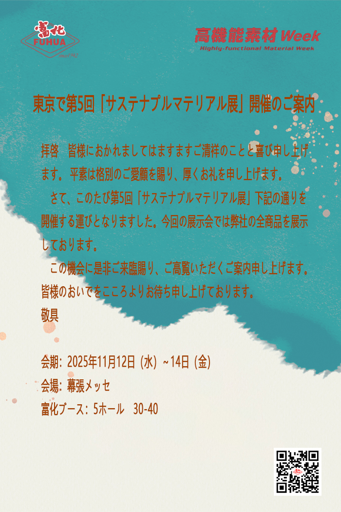 2025年11月12日から14日まで、幕張メッセにおいて「2025 日本高性能材料週-サステナブルマテリアルEXPO」が盛大に開催されます。今回の業界盛会は、多様な持続可能な新材料・新技術に焦点を当て、新質生産力と新発展理念で多くの業界関係者を広く参加させ、出展者とお客様に良好な市場機会と協力交流のプラットフォームを提供します。